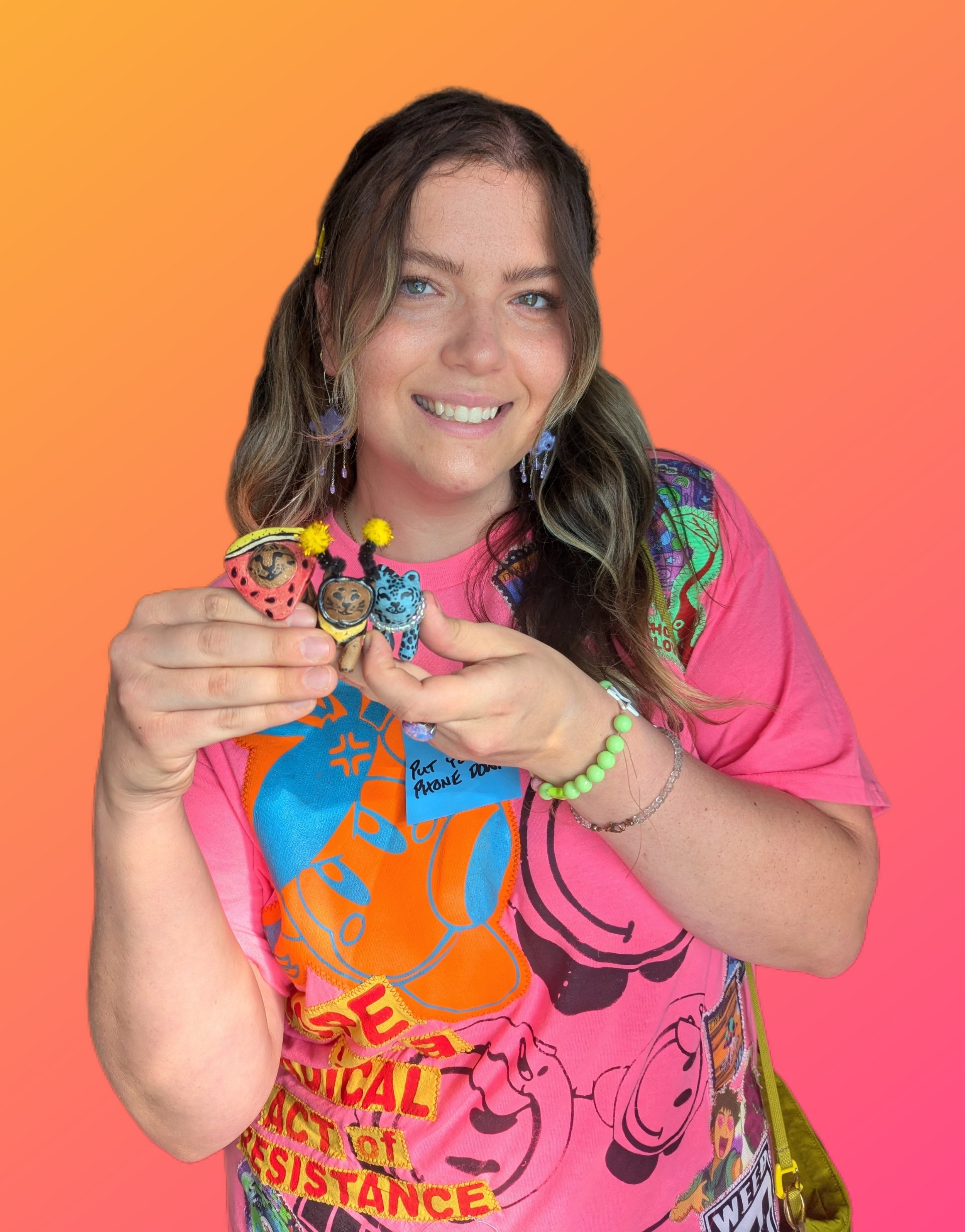 Abby Jo Elle is an artist born and raised in the Indianapolis area. Her love of the arts was enriched at the University of Indianapolis, where she studied and received a BS in pre-art therapy with minors in painting and psychology. After discovering ceramics her senior year, she practices clay in all aspects of her life. With 6+ years of experience being a studio technician and caregiver, her art is motivated by the practice of grounding herself through clay, fostering community and connection in a “chronically online” world.